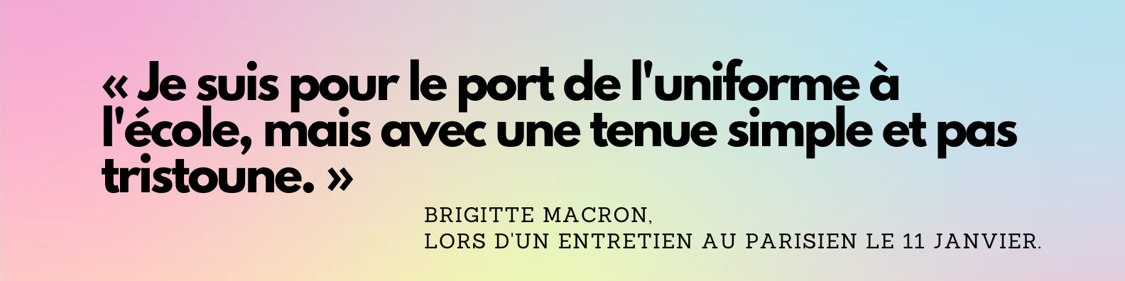 Emmanuel Macron a confirmé, mardi 16 janvier, en préambule d’une grande conférence de presse, que la tenue unique pour les élèves serait expérimentée dès cette rentrée dans une centaine d’établissements scolaires volontaires et généralisée en 2026 si les résultats sont concluants.