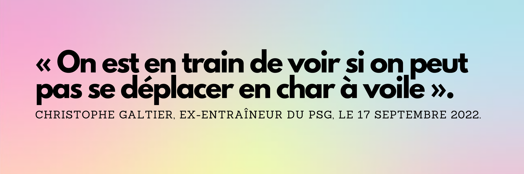 ✠Le 17 septembre 2022, Christophe Galtier, lâex-entraĂźneur du PSG, rĂ©pond Ă une question sur un la possibilitĂ© d'adopter une dĂ©marche plus Ă©co-responsable lors dâune confĂ©rence de presse. Il fait marrer Kylian MbappĂ©, Ă©galement prĂ©sent. La scĂšne provoque un tollĂ©. Est-ce que ça a provoquĂ© une prise de conscience ?