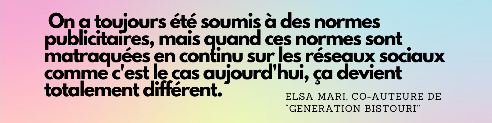 - En mars 2023, tout juste un mois aprÚs la sortie de l'ouvrage d'Elsa Mari et Ariane Riou, le gouvernement a dévoilé les conclusions de ses travaux pour réguler l'activité des influenceurs en France. Parmi les premiÚres décisions qui ont été annoncées se trouve l'interdiction de faire la publicité de la chirurgie esthétique sur les réseaux sociaux, votée en juin 2023. « C'est vraiment une belle avancée qui résulte d'une vraie prise de conscience », se félicite Elsa Mari.