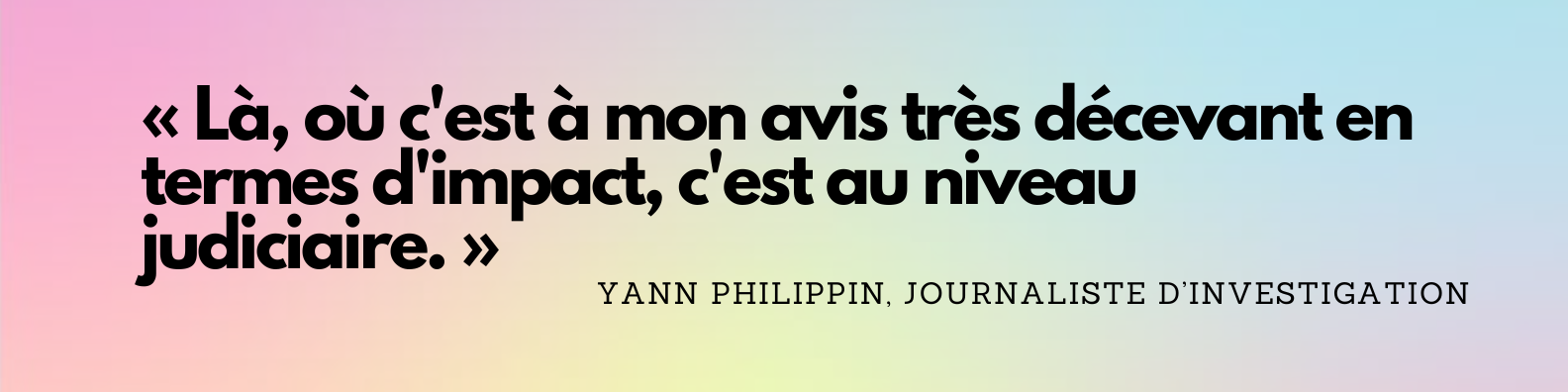 En tant que journaliste, il faut rester extrêmement modeste. On est évidemment content quand nos enquêtes ont un impact, mais ce n'est pas le but qu'on va rechercher. Notre job, c'est de mettre des éléments d'intérêt public sur la place publique. Après ce n'est plus à nous de s'en emparer, c'est à la justice, à la société civile et au monde politique.